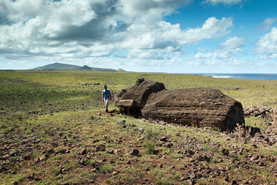 Easter Island is one of the most isolated inhabited places on the planet. It sits about halfway between the Chilean coast and Tahiti and somehow many many thousands of moons ago a crew of intrepid Polynesians tested their skills and sailed into the Pacific in search of something else. What they found would later become known as the Southeastern most point of the Polynesian triangle, Easter Island. Today travelers come from far and wide specifically to see the Moai. The monolithic stone sculptures that were carved in a quarry called Rano Raraku and then were transported to their final platforms upwards of 12 miles away. The largest Moai that made it to a platform was 86 tons. Each village had a platform and on it sat the living faces of deified chiefs. Getting them to the platforms today remains a mystery. But the general consensus is that they were moved standing straight upright. In a sense the Moai walked themselves to their platforms and in doing so they proved that they were worthy of representing the chiefs they were meant to become. If a Moai fell during transport it was abandoned and a new one was carved. The remarkable thing about this area is that you can see all phases of the archaeology. You see where the Moai were carved, the routes where they were transported and the finished platforms. I found myself admiring them for hours trying to piece together how and why this civilization spent so much of its energy on this undertaking. Easter Island is an open walled museum. Everywhere I stepped I felt the history beneath my feet.